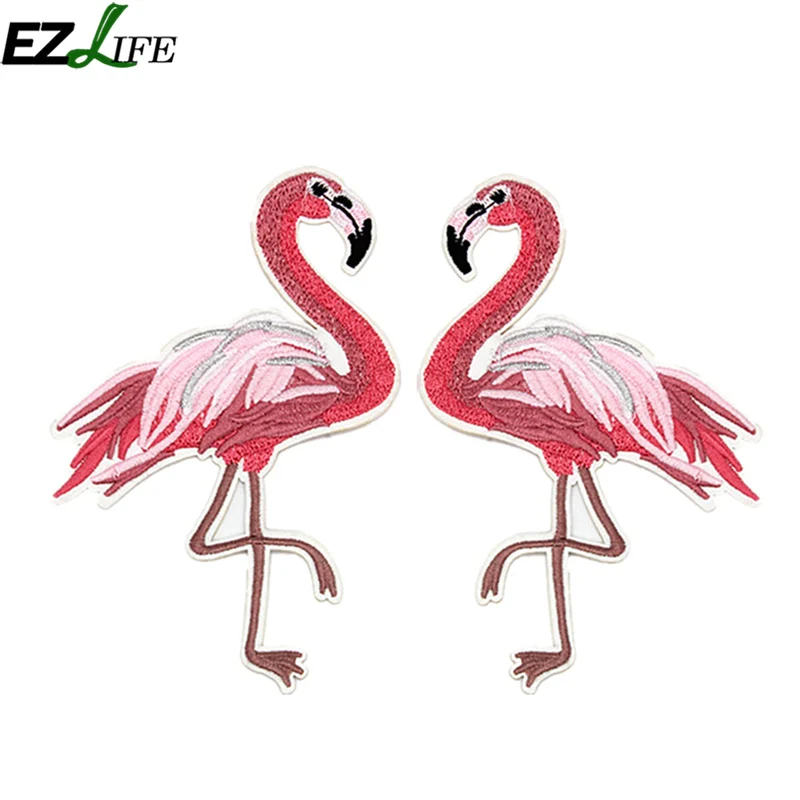 Good 2pcs/set Parches Red Flamingo Applique Embroidery Patch For Clothing Clothes Sew-On Iron-On Sewing Sticker Clothes LQW1586 offers
