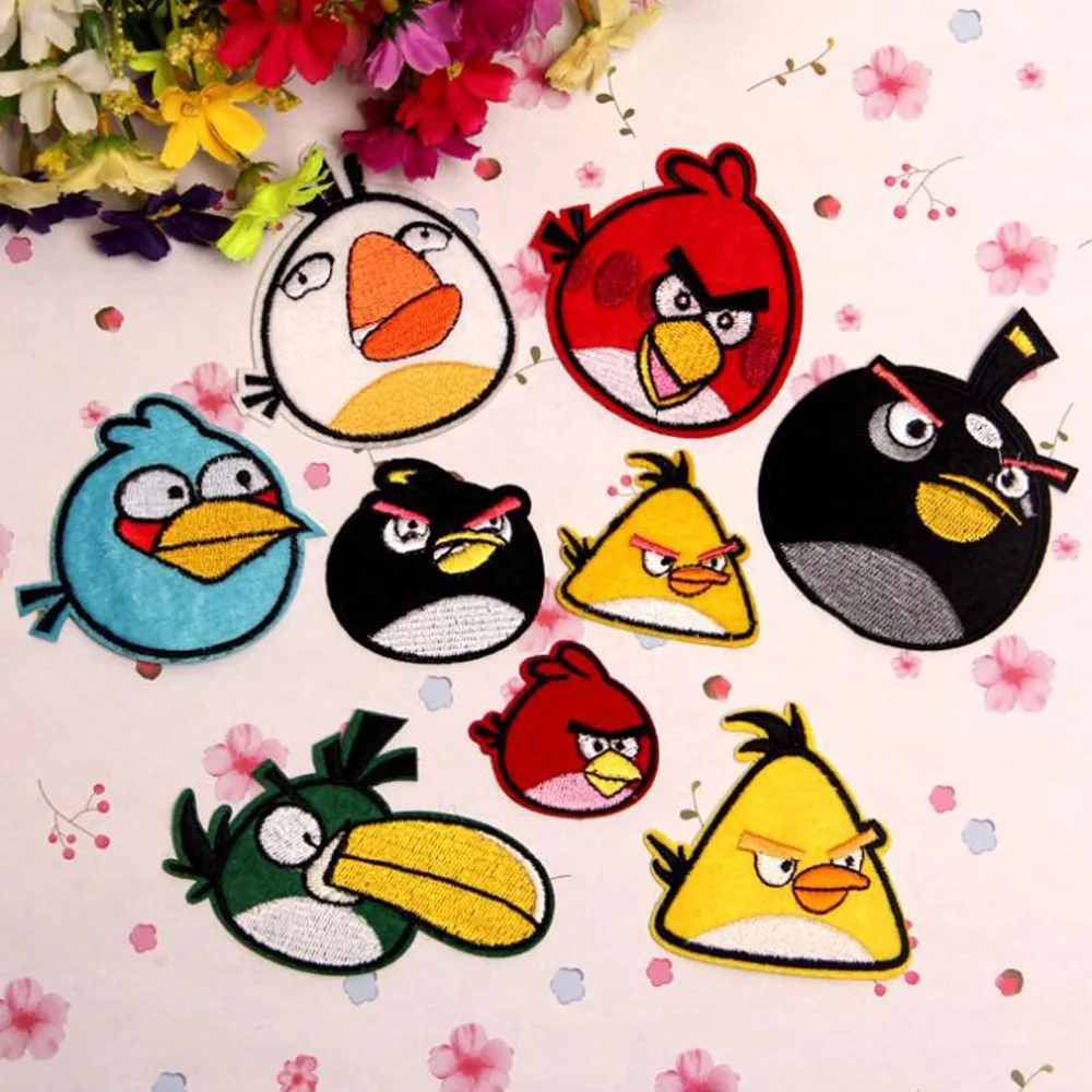 SALE 1PCS/lot Angry Birds Iron On Patches For Clothing Embroidery Patch Fabric Badge Stickers For Clothes Jeans Backpack Decoration