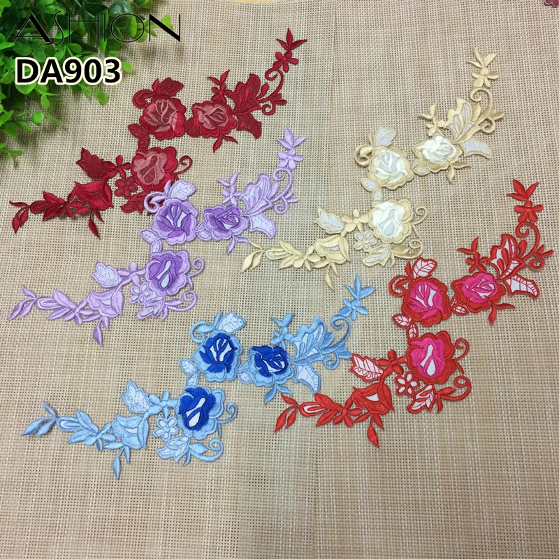 Best Price 10 PCS Multicolor optional embroidery Iron stick Dress trousers lace applique flower patch dancing garment accessories DA903