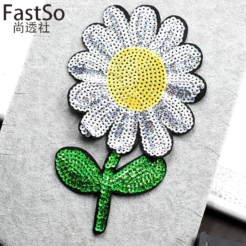 Cheap Price FastSo 1 Pcs Silver Sequins Embroidery Flower Bead Buiter Clothes Sunflower Patch Affixed for Clothing Shirts Dress Decoration