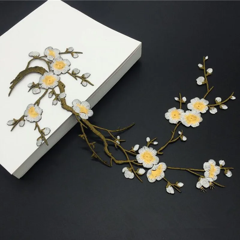 Discount !! 1pcs Plum Blossom Flower Applique Clothing Embroidery Patch Fabric Sticker Iron On Sew On Patch Craft Sewing Repair Embroidered