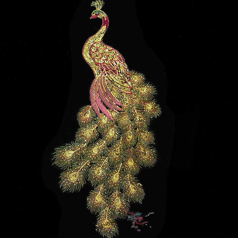 Promo Offer DIY Peacock Flower Sequins Embroidered Patches For Clothes Applique Embroidery Flower Wedding Dress Sewing Trim Garment Decor