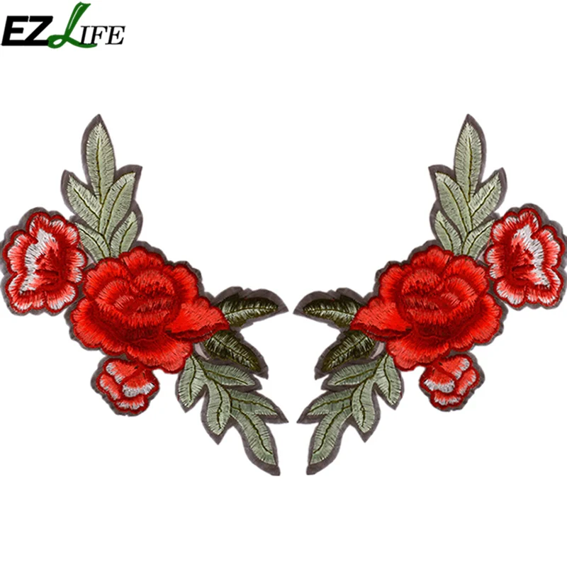 SALE 2pcs/Set Red Flower Patches for Clothes Applique Embroidery Flower Patches Sticker for Clothes Parches Bordados LQW0719