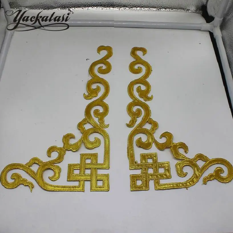 SALE YACKALASI 1 Pair 3D Flower Embroidery Patches Mirror pair Gold and silver Costume flower Appliqued 29*16.5cm
