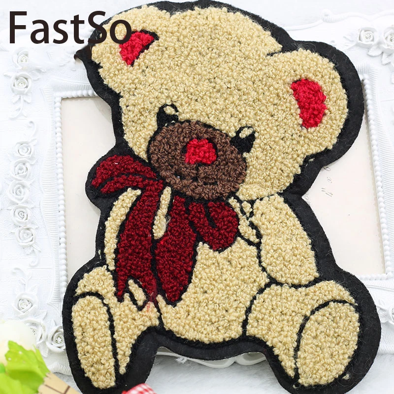 Best Price FastSo 1 Pcs 12.7*18cm 18.5*26cm Fabric Sticker Embroidery Iron on Sew on Patch Clothes Applique Decorative Bear Brand Patch
