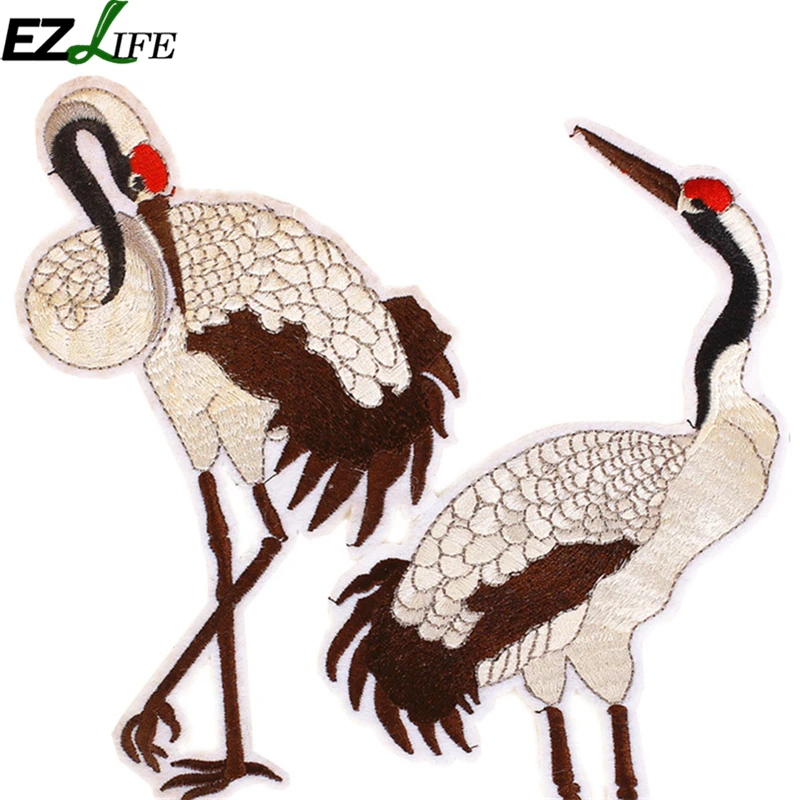 SALE 1pcs Red-crowned Crane Bird Patch Embroidery Iron On Patches For Clothes Fabric Patch Clothes DIY Decoration Patches LQW1812